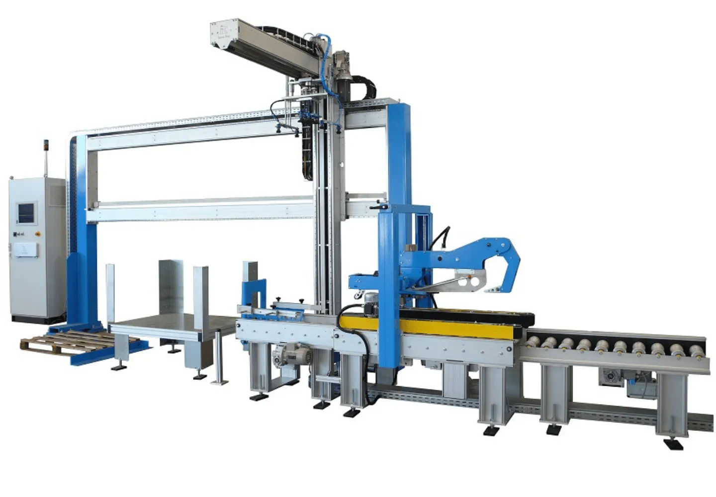 Solitamente è utilizzato per la palletizzazione di prodotti ed è indicato per situazioni con poco spazio e/o con altezza ridotte.