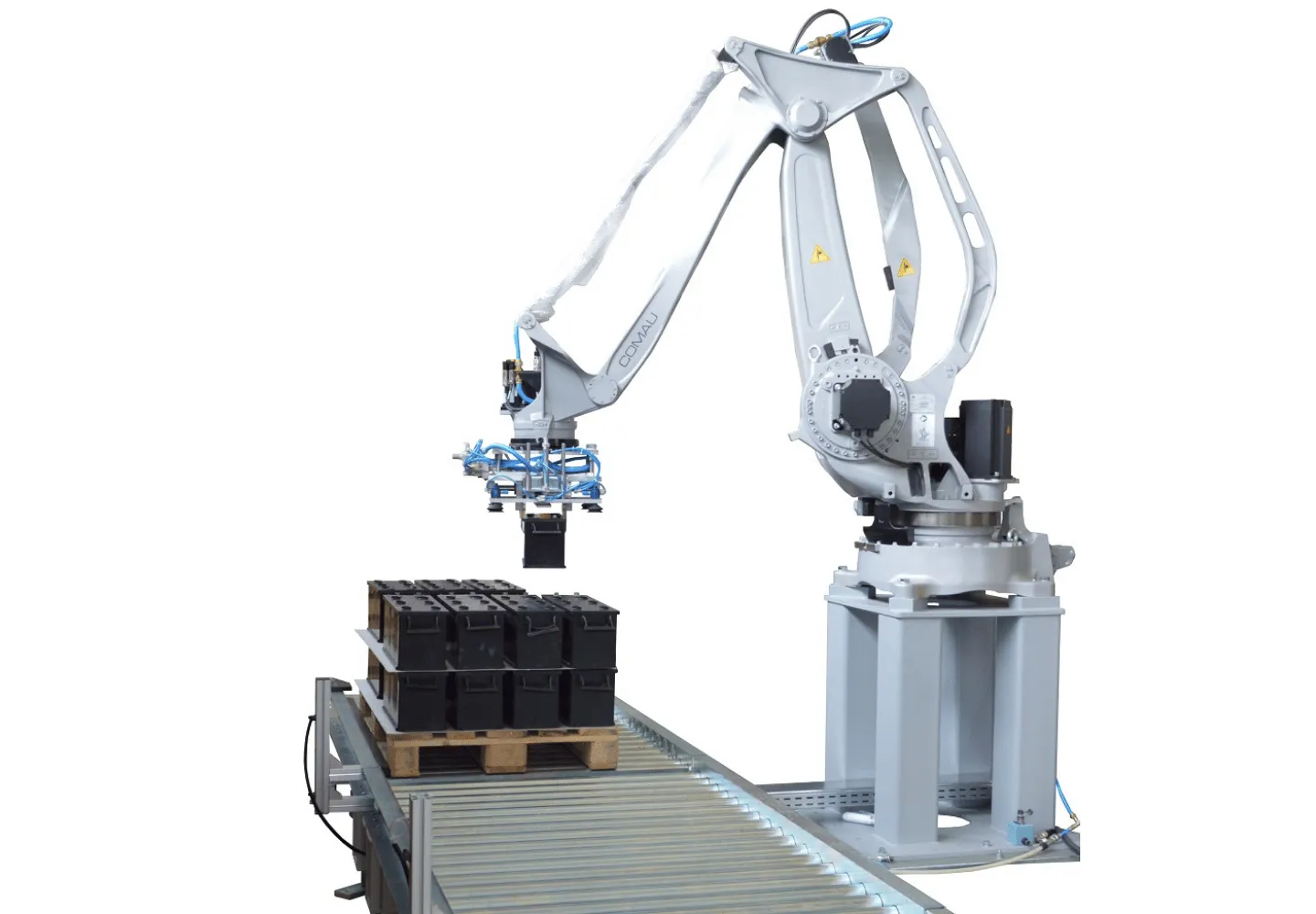 Principalmente integriamo robot COMAU o ROKAE.