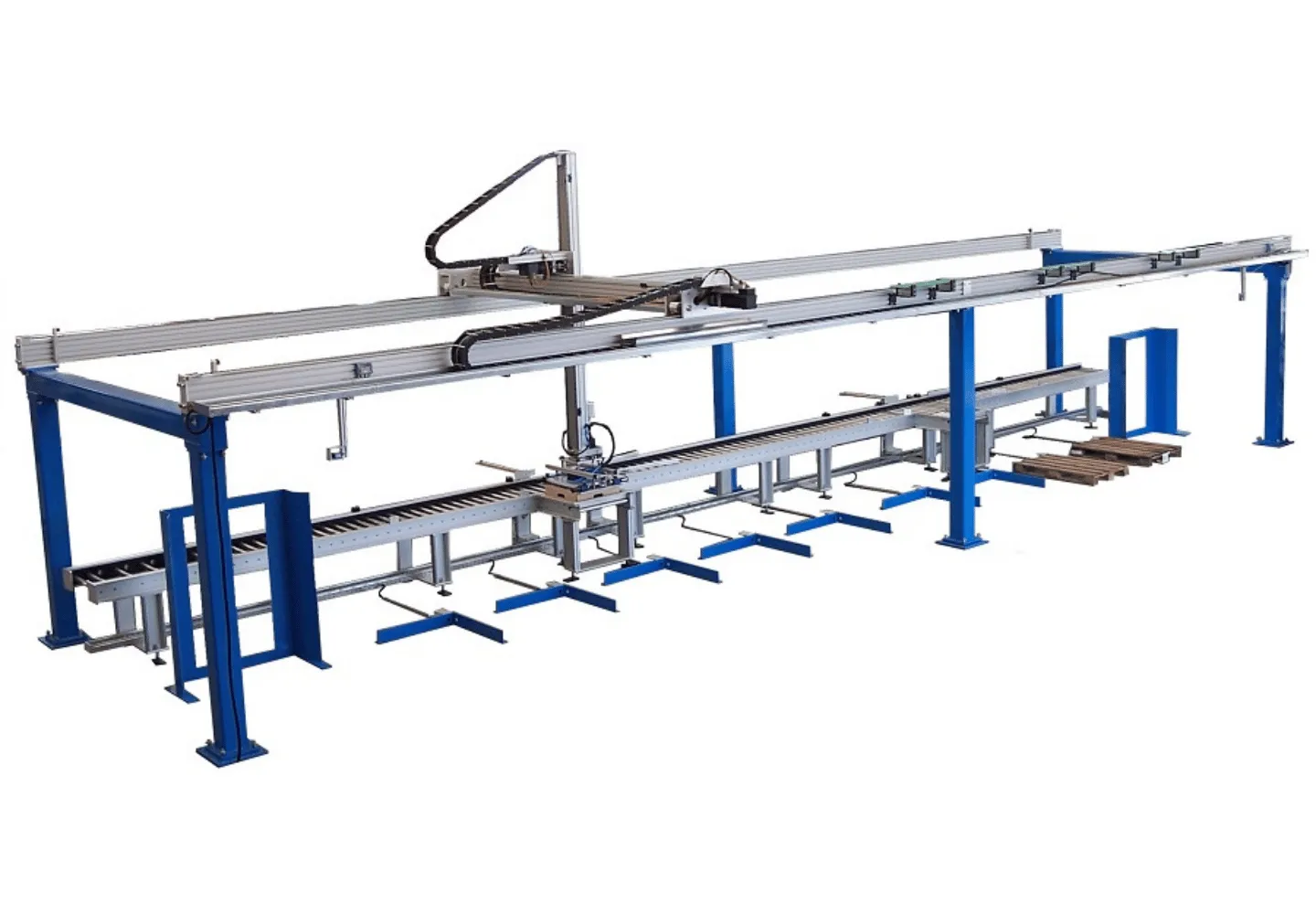 Il robot può essere dotato di più bracci, più carri ed il verticale può anche essere di tipo telescopico e può raggiungere lunghezze fino a 40 metri.