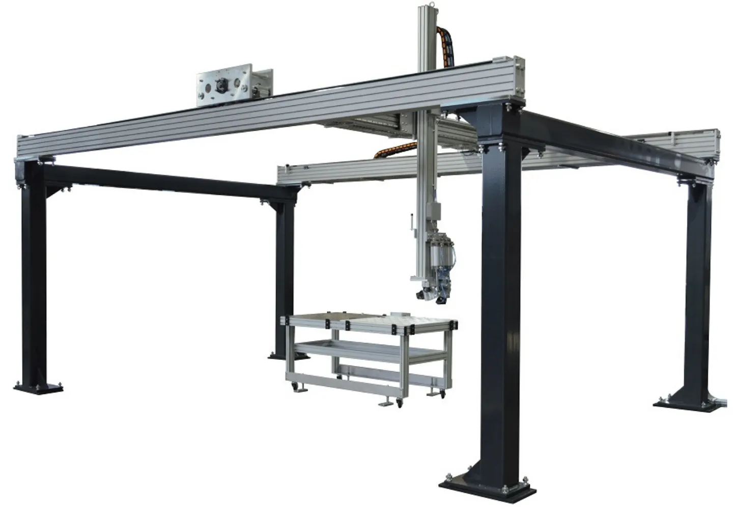 Il robot può essere dotato di più bracci, più carri ed il verticale può anche essere di tipo telescopico e può raggiungere lunghezze fino a 40 metri.