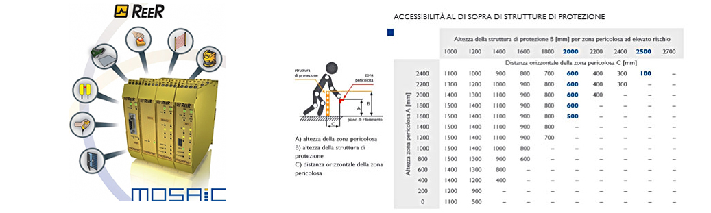 Come viene evidenziato dalla formula, la distanza minima tra le fotocellule di sicurezza e l’organo in movimento e di 750mm. E’ possibile ridurre ulteriormente tale distanza riducendo il tempo d’arresto del sistema al limite fisico di 165ms (dato che varia in funzione della taglia/dimensioni del robot e del peso movimentato) portando cosi la protezione a minimo 550mm ma stressando notevolmente la meccanica nel caso intervenga l’ arresto d’ emergenza. Il software supervisione WinPlancia richiede ogni 6 mesi il controllo di tutti i dispositivi di sicurezza. La password per lo sblocco del sistema viene rilasciata solo al responsabile e una volta sbloccato il sistema registrera l’ evento nel report degli allarmi. Sara poi cura del cliente effettuare i relativi controlli al momento piu opportuno.