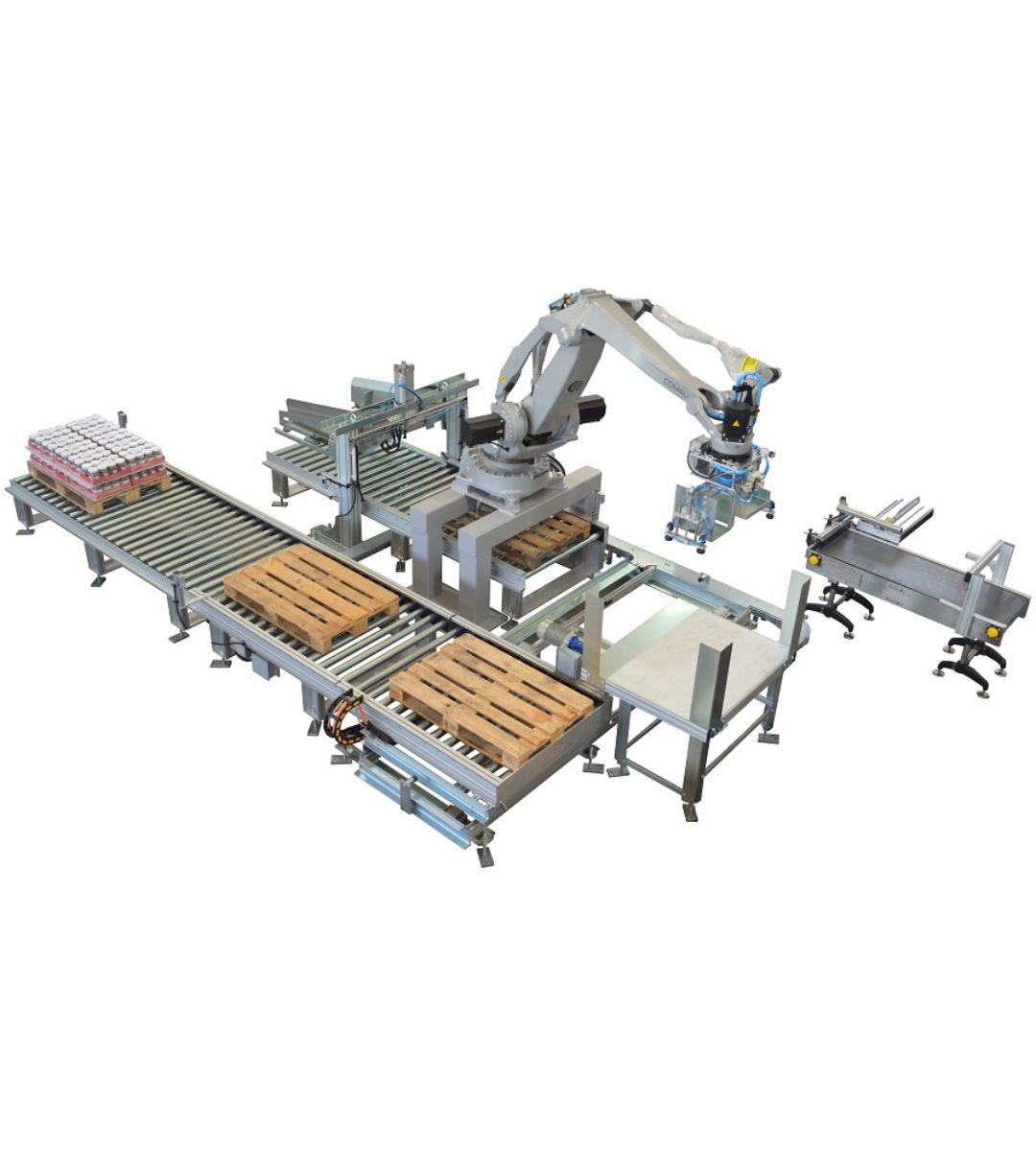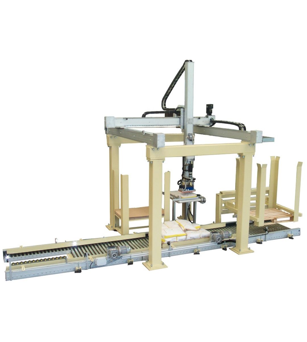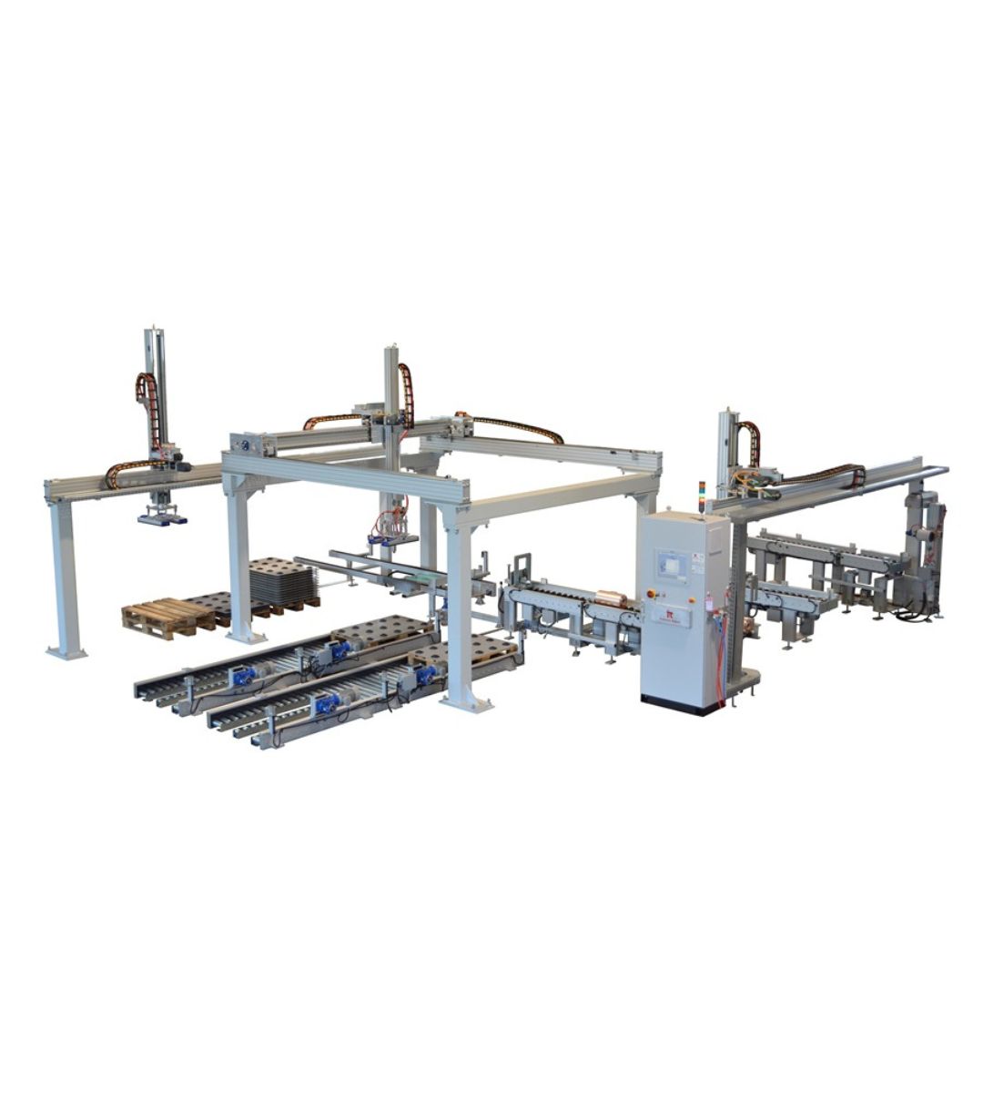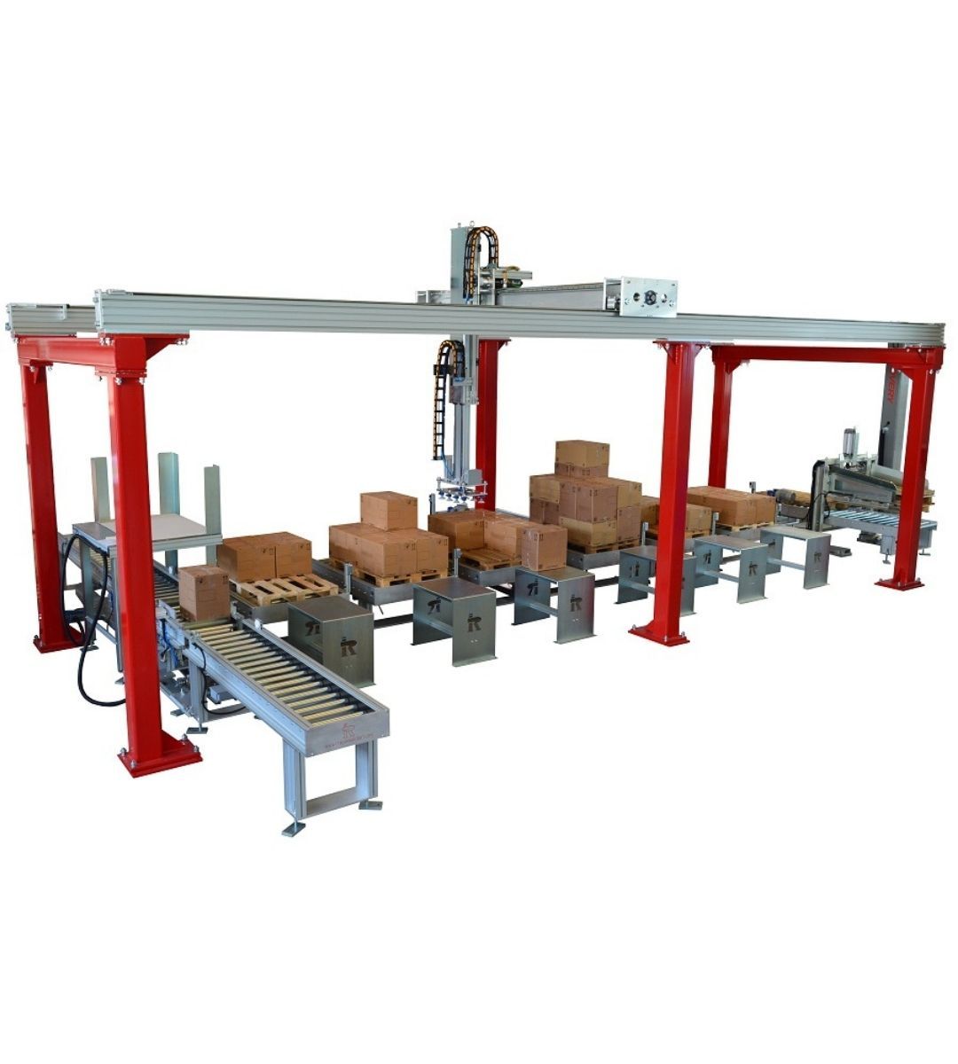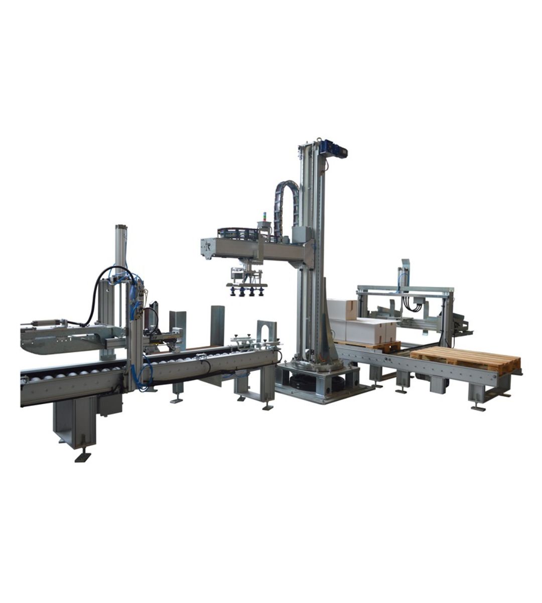 Produciamo principalmente robot cartesiani per fine linea, pallettizzazione e packaging. Integriamo soluzioni con robot antropomorfi, cobot e altre macchine accessorie come fasciapallet, reggiatrici e sistemi di marcatura laser per rispondere ad applicazioni più complesse e flessibili. Realizziamo internamente anche gran parte delle movimentazioni, tra cui magazzini pallet, rulliere, navette, nastri e molto altro.
