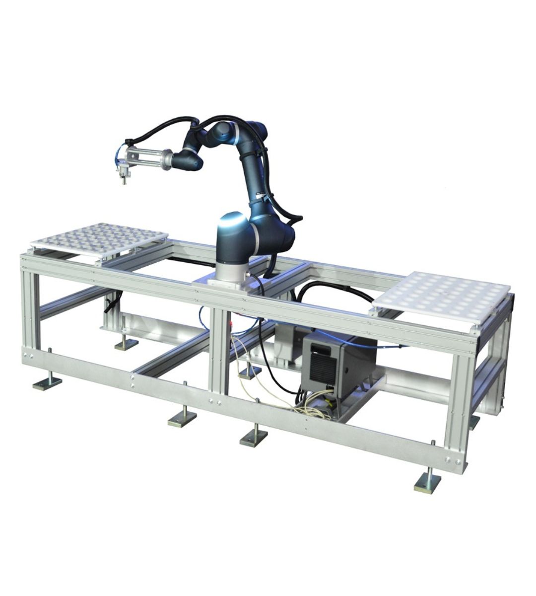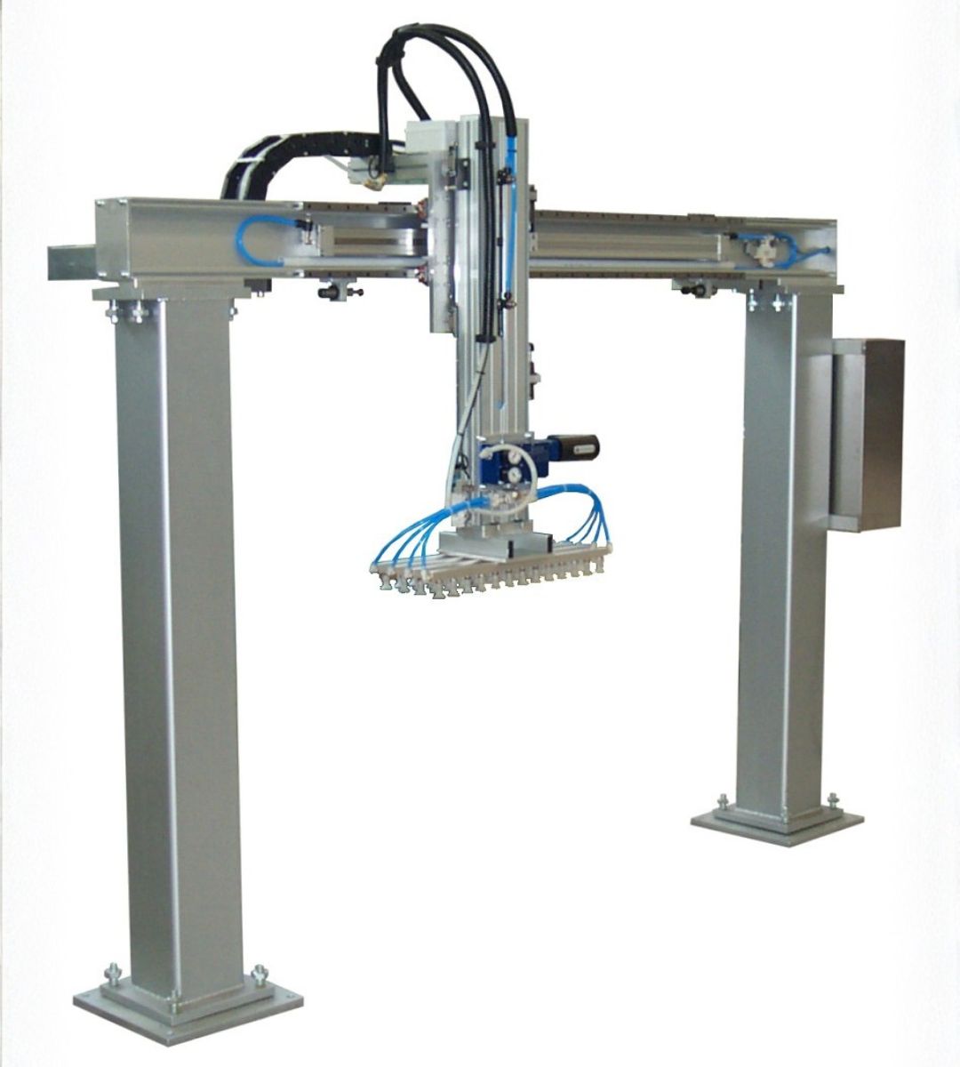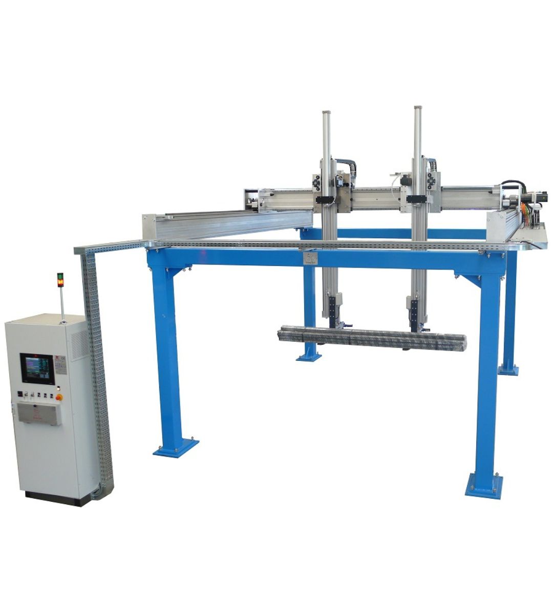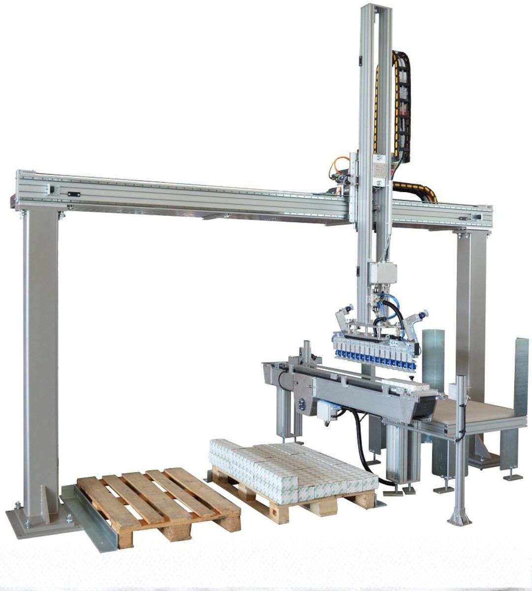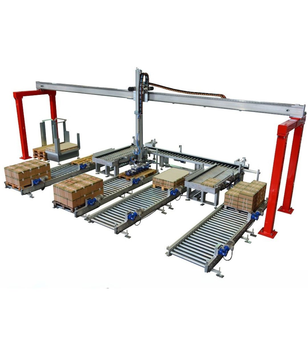 Produciamo principalmente robot cartesiani per fine linea, pallettizzazione e packaging. Integriamo soluzioni con robot antropomorfi, cobot e altre macchine accessorie come fasciapallet, reggiatrici e sistemi di marcatura laser per rispondere ad applicazioni più complesse e flessibili. Realizziamo internamente anche gran parte delle movimentazioni, tra cui magazzini pallet, rulliere, navette, nastri e molto altro.